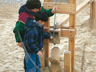 Kinderen observeren maar al te graag de levendige activiteit op een bouwwerf. De structuur van deze arbeid, met name het samenwerken van mensen en machines, is voor kinderen bijzonder interessant. De bouwwerkplaats met transportinrichting weerspiegelt deze bouwactiviteiten in het klein. Transportrails, overlaadplaatsen, loopwagens, kraan, takels en schopjes laten de kleine arbeiders toe het arbeidsproces realistisch na te spelen. Daarnaast wordt inzicht verworven maar worden ook samenwerking en creativiteit gestimuleerd.
