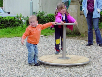 Het bijzondere design van deze carrousels met hun afgelijnde contouren en verschillende afmetingen doet meteen denken aan vader, moeder en kind. De licht lopende carrousels worden door aanduwen in beweging gebracht, zittend met de hand, staand met de voet. Door eenvoudige gewichtsverplaatsing kunnen ze versneld of vertraagd worden. De grote ringbeugel dient als handgreep en nodigt tegelijkertijd uit tot eenvoudige turnoefeningen. Deze carrousels komen pas volledig tot hun recht als ze als familie in groep zijn opgesteld. De carrousels zijn aangepast aan diverse leeftijdsgroepen en hebben een menselijke vorm waardoor ze gemakkelijk herkenbaar zijn. Op een speelse wijze kan men het pirouette-effect beleven.