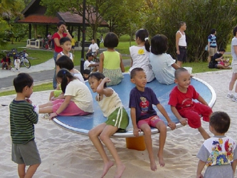 Het draaimannetje heeft door zijn vriendelijke voorkomen en zijn aangepaste afmeting een grote aantrekkingskracht op kleine kinderen. Slechts weinig kracht is nodig om het mannetje met of zonder medepassagier in beweging te brengen. Door verplaatsing van het zwaartepunt kan de draaisnelheid worden beïnvloed. Aan de armen of de kraag kan men zich goed vasthouden om samen met het mannetje rond te draaien. Grotere kinderen nemen liever plaats op de kraag en genieten vanaf een hoogte van de rit. Op deze kleutercarrousel kan men op speelse wijze de wet van de middelpuntvliedende kracht ervaren.
