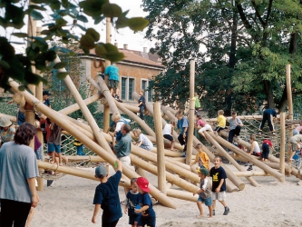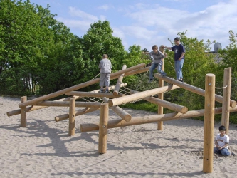 De jungle-arena is samengesteld uit onregelmatige en met de hand bewerkte rondhouten balken, en integreert zich door zijn speelse vormen perfect in een natuurlijke omgeving. Op een kleine ruimte kunnen veel kinderen spelen; ook een plotse verhoging van de speeldruk wordt door de jungle-arena opgevangen en omgezet in een vloeiend spelritme. De jungle-arena is niet alleen een mooie zitplaats om uit te rusten of te observeren, maar nodigt ook uit om te klauteren, hoogte te beleven en tactiele ervaringen aan handen en voeten op te doen. De speelse- en figuratieve vormen van de chaotische klauterstructuur wekken de fantasie van kinderen op.