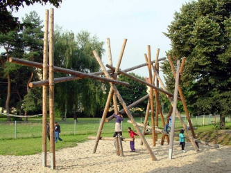 De jungle-arena is samengesteld uit onregelmatige en met de hand bewerkte rondhouten balken, en integreert zich door zijn speelse vormen perfect in een natuurlijke omgeving. Op een kleine ruimte kunnen veel kinderen spelen; ook een plotse verhoging van de speeldruk wordt door de jungle-arena opgevangen en omgezet in een vloeiend spelritme. De jungle-arena is niet alleen een mooie zitplaats om uit te rusten of te observeren, maar nodigt ook uit om te klauteren, hoogte te beleven en tactiele ervaringen aan handen en voeten op te doen. De speelse- en figuratieve vormen van de chaotische klauterstructuur wekken de fantasie van kinderen op.