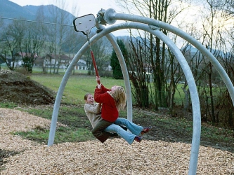 De goed gevormde metalen poorten van de kabelbaan met een grote boog zijn echte blikvangers. Door een flinke aanloop te nemen en dan op het pendelzitje te springen is er een snelle beweging aanwezig. Dit wekt de vreugde bij de kinderen al snel op. Er komen genoeg bewegingen van pas om te spelen rondom de kabelbaan.