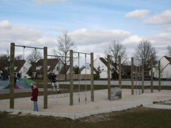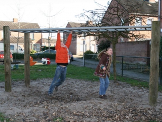 De klimwand is een robuust klautertoestel voor kinderen van verschillende leeftijden. Het toestel bestaat uit een kettingnet, een glijstang en een sportenklimstang.