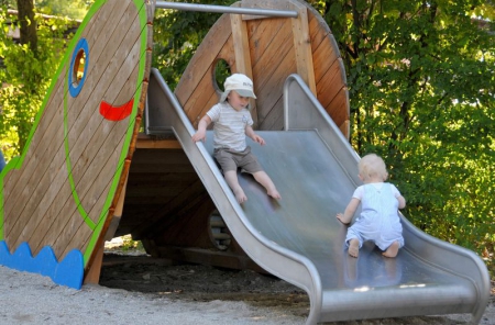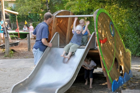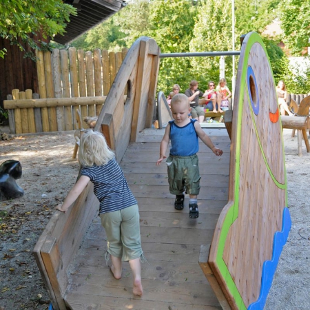 De grote vis die net opduikt uit het water heeft door zijn vriendelijk uitstraling een grote aantrekkingskracht op kleine kinderen. Zij kunnen via een trap of hellend toegangspad de speelvloer bereiken en door de grote "patrijspoorten" de omgeving observeren. Op de brede glijbaan kan men ook met twee tegelijk genieten van de glijpartij. De buik van de vis onder de vloer kan gebruikt worden als speelhuisje of schuilplaats.