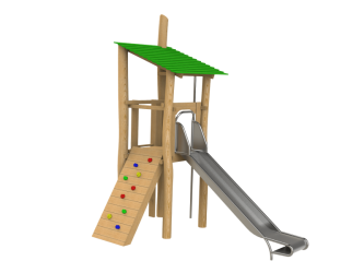 Robinia platform met dak, glijbaan, glijstang en schuine wand