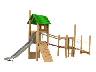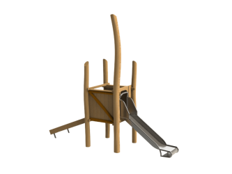 Robinia vierhoektoren met glijbaan en hellend toegangspad zonder dak