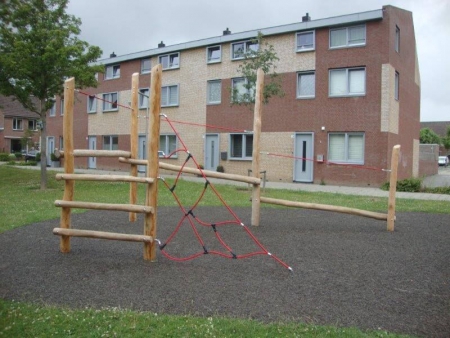 Robinia vierhoektoren met glijbaan en hellend toegangspad