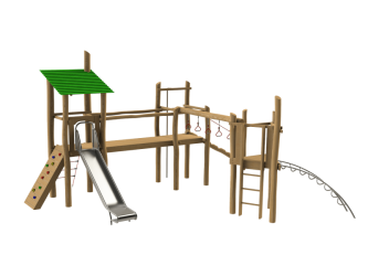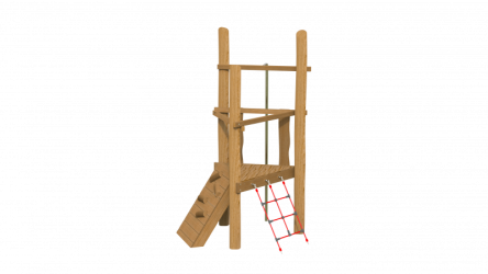 Robinia driehoekplatform met schuine wand, hellende klimnet en glijstang, zonder dak