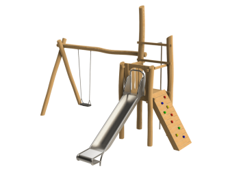 Robinia platform met schommel, glijbaan, glijstang en schuine wand