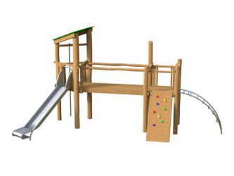 Deze combinatie is op zich een kleine, maar volledige speelplaats. Het ruime spelaanbod spreekt kinderen aan. De combinatie van glijbaan, glijstang en schuine wand maakt dat het toestel op diverse manieren beklommen en weer verlaten kan worden. De speelcombinatie met schommel is op zich al bijna een kleine complete speelplaats. De schommel is een attractief bewegingstoestel.