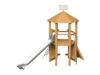 Robinia zeshoektoren met dicht dak en zitgelegenheid - verkeerstoren