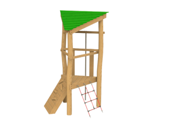Robinia driehoektoren met schuine wand, hellend klimnet en glijstang
