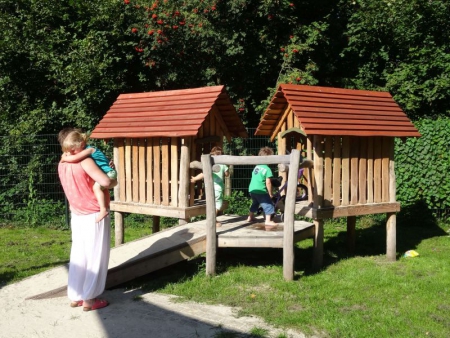 Het robinia speelhuiscombinatie toestel schept een vriendelijke atmosfeer tijdens het spel. Doordat het speelhuiscombinatie toestel op steunpalen staat bied je een hogere speelwaarde. De diverse speeletages nodigen uit tot intensief rollenspel. Het platform is een trefpunt. De combinatie spoort aan tot klauteren en ravotten. Het speelhuiscombinatie toestel lenen zich voor familiespelen.