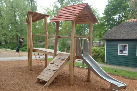 Deze veelzijdige torencombinaties nemen slechts een kleine ruimte in, maar ze bieden een scala aan bewegingsactiviteiten. De esthetische vierhoektoren harmonieert uitstekend met de diverse aanbouwtoestellen. Hij kan tegelijkertijd een toevlucht, een vesting of een klauterobject zijn; de kleine ruimten bieden geborgenheid en bescherming. Via verschillende toegangen kan men het uitkijkplatform bereiken. Langs de glijbaan komt men op een prettige manier weer op de begane grond. De aanbouw- en verbindingstoestellen hebben een verschillende moeilijkheidsgraad en ze sporen aan tot gevarieerde spelen.