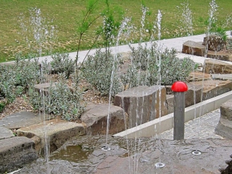 De watergoten doen denken aan regengoten. Door de grote diepte kunnen ze hoge watermassa's transporteren. Hier kan men het vloeien en snel stromen van water ervaren. De waterbekkens zijn door hun roestvrijstalen staanders bijzonder geschikt voor de verbindingen van oeverzones met watervlakten. De licht glooiende vlakke bekkens kunnen zo geïnstalleerd worden dat ze juist op het water liggen.