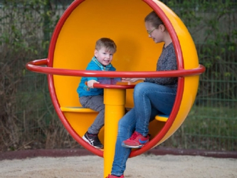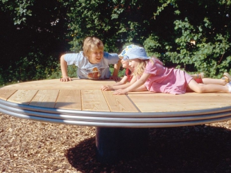 De schaal lijkt op een gelande vliegende schotel die iedereen uitnodigt om mee te reizen. Wie plaats neemt in de concave schijf, begint vanzelf langzaam en zacht mee te bewegen met de rotatie. Men kan in de schijf gaan liggen en zich laten meedrijven. De schaal past zich aan alle bewegingen en aan elk tempo van de reizigers aan. Zelfs kinderen met een beperkte motoriek houden van deze zachte carrouselrit die de centrifugale kracht trotseert.