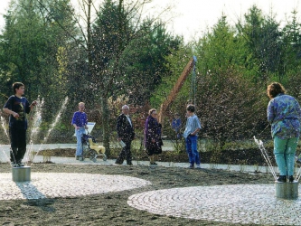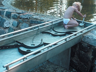 Deze krokodil is een hulpvaardige "partner" voor de watervoorziening van zandspeelzones. Via een eenvoudig bedienbare hendel kan men de muil openen en zo de krokodil laten "drinken" uit een klein waterbekken. Het opgeschepte water stroomt door het lijf, dat met zijn twee houten goten het water verder leidt en op het einde laat wegstromen. De schepkrokodil accentueert een waterspeelzone en verhoogt de speelmogelijkheden. Naast een nieuwe creatieve vorm geeft de schepkrokodil door zijn vriendelijk voorkomen ook een impuls voor associatief rollenspel.