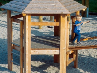 Zeshoekhut zonder dak, met zijwanden en zitbank