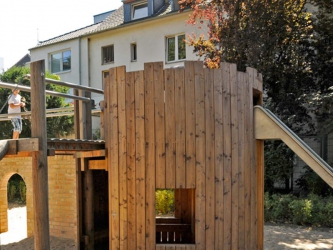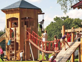 Bereik je de top van de uitkijktoren via een ladder, of je staat op het balkon en geniet van het uitzicht. Bovendien kan het balkon worden gebruikt als verbinding met andere speeltoestellen, zoals een hangbrug. De drie ingebouwde verdiepingen zorgen ervoor dat er gezellige speelruimtes ontstaan. In combinatie met een glijbaan is de uitkijktoren een aantrekkelijke eye-catcher.