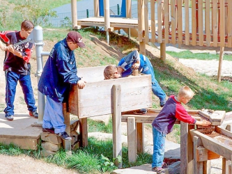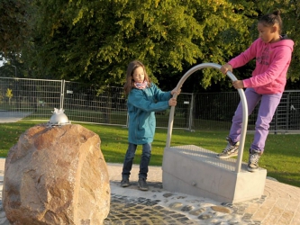 De watergoten doen denken aan regengoten. Door de grote diepte kunnen ze hoge watermassa's transporteren. Hier kan men het vloeien en snel stromen van water ervaren. De waterbekkens zijn door hun roestvrijstalen staanders bijzonder geschikt voor de verbindingen van oeverzones met watervlakten. De licht glooiende vlakke bekkens kunnen zo geïnstalleerd worden dat ze juist op het water liggen.