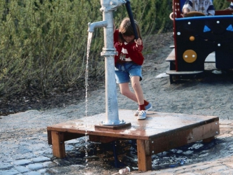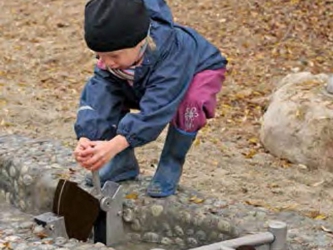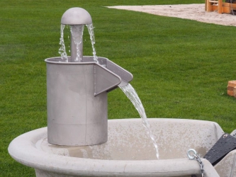 De watergoten doen denken aan regengoten. Door de grote diepte kunnen ze hoge watermassa's transporteren. Hier kan men het vloeien en snel stromen van water ervaren. De waterbekkens zijn door hun roestvrijstalen staanders bijzonder geschikt voor de verbindingen van oeverzones met watervlakten. De licht glooiende vlakke bekkens kunnen zo geïnstalleerd worden dat ze juist op het water liggen.