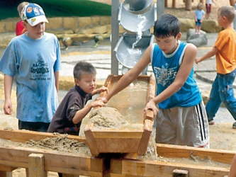 Dankzij het design en de gemakkelijke bedienbaarheid is de zwengelpomp ook geschikt voor kleine kinderen. Hydraulische olie wordt in een kringloop gepompt waarbij de pompweerstand op de kracht van de kinderen kan worden ingesteld. Het hydraulisch systeem zorgt ervoor dat het waterventiel tijdelijk geopend wordt, waardoor het water uit de pomp kan stromen. Het leidingwater reikt tot aan het ventiel en er blijft geen restwater achter in de pomp.